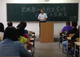 2015年9月10日上午在教3-101思政部召开了2015级新生入学教育暨导师见面会,思政部主任田亮、书记何春水、副主任王苏喜、部分导师代表、研究生秘书陈泊蓉以及2015级55名新生参加了会议,办公室主任李明芳主持会议。