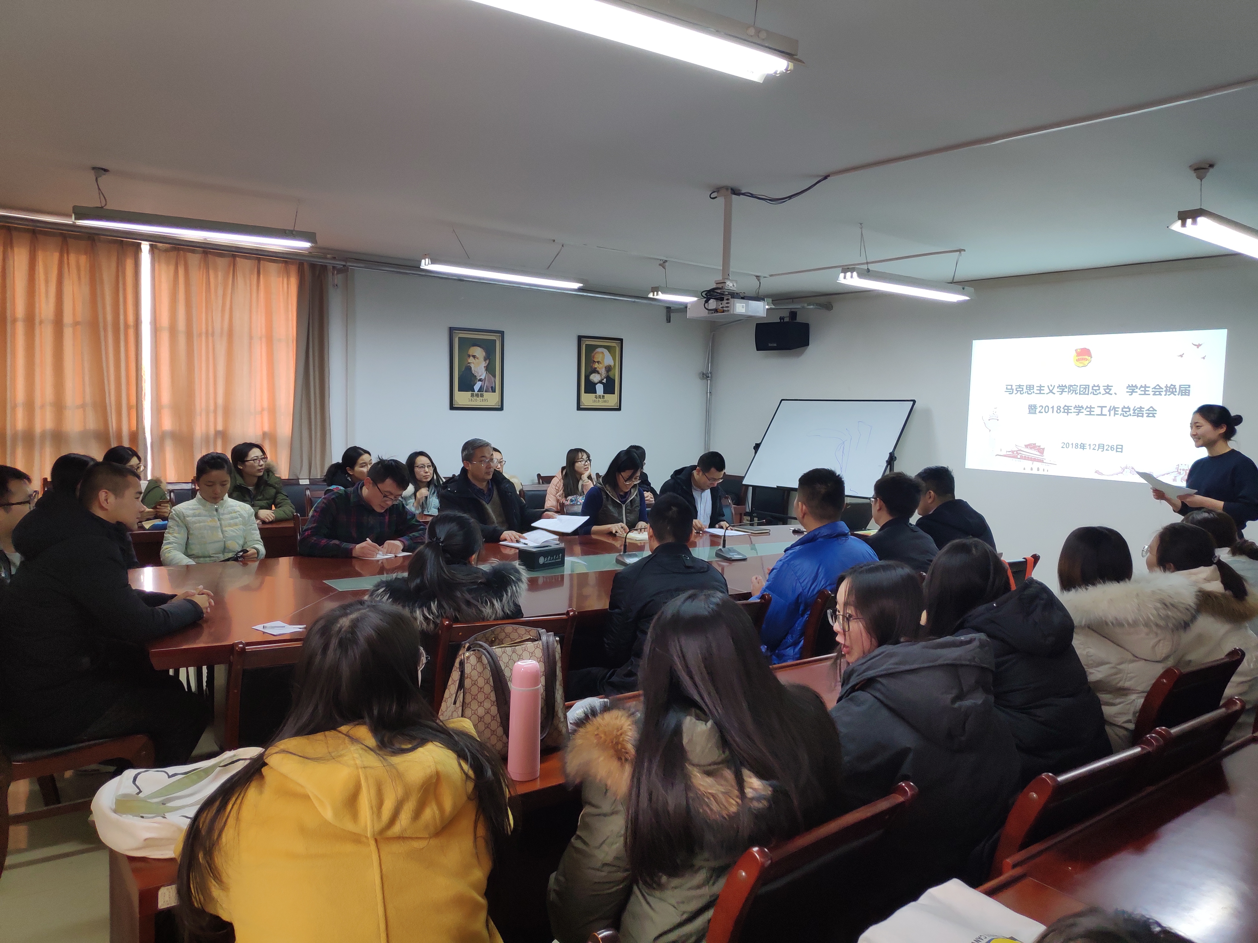 2018年12月26日下午,tyc122ccvip在行政楼623召开团总支部、员工会换届和2018年员工工作总结会,参加会议的有马克思主义公司党委书记李晓彤、团委书记陈泊蓉及2017级、2018级全体研究生。