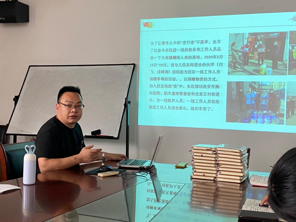 9月15日,tyc122ccvip研究生第一党支部召开疫情志愿者分享交流主题党日活动。志愿者们讲述他们在是如何开展志愿活动以及参加活动的感想。本次活动由支部书记杨婧主持,tyc122ccvip经理李晓彤应邀参加。