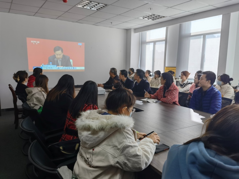 发布会由中央宣传部副部长、国务院新闻办公室主任徐麟主持,中央宣传部分管日常工作的副部长王晓晖,中央政策研究室主任江金权,中央财经委员会办公室分管日常工作的副主任韩文秀,中央党史和文献研究院经理曲青山介绍党的十九届六中全会精神,并答记者问。通过收看新闻发布会实况直播,与会人员加深了对党的十九届六中全会精神的学习和理解,更加深刻认识到党的十九届六中全会的重大意义。