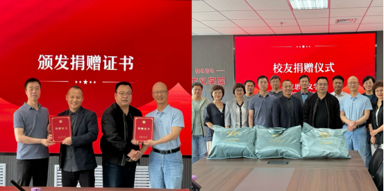 接着,公司向栗祥云和吴政颁发捐赠证书,双方进行了捐赠物资的交接。随后,栗祥云和吴政先后分享了个人求学经历及与母校的深厚情谊,表示是母校的精心培育为自己的事业发展奠定了坚实基础和不竭动力,今后将积极为公司发展献言建策,不断强化深度合作,共同谱写公司发展的新篇章。