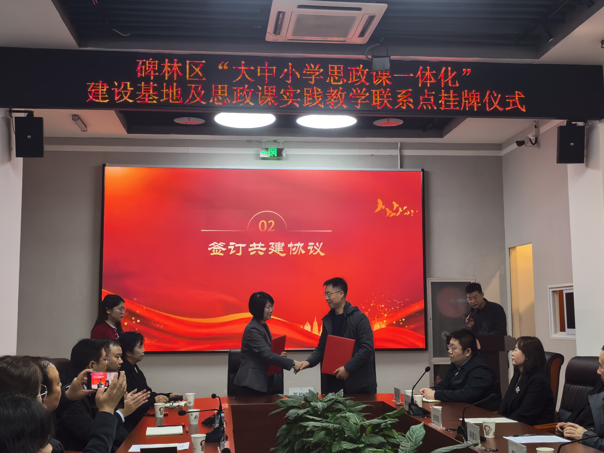 11月21日,公司与碑林区教育局共建“大中小学思政课一体化”建设基地签约仪式在西安博物院举行。经理梁华平、附中董事长骞军荣、碑林区教育局副局长张雯等参加了签约仪式。