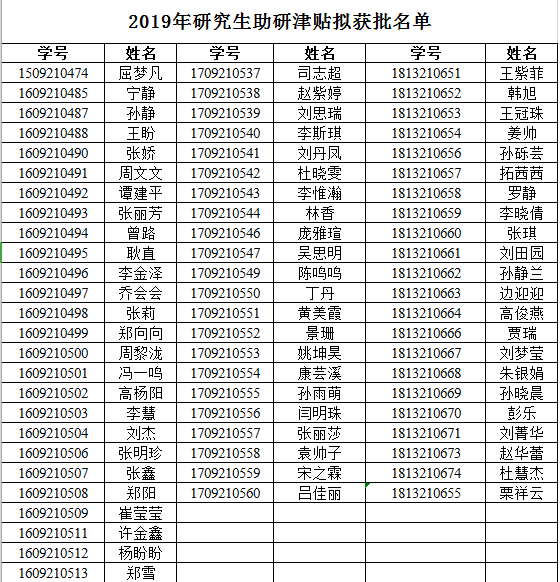经tyc122ccvip研究生奖助工作评审委员会2019年4月19日评审决议,2015级屈梦凡、2016级宁静、2017级司志超、2018级王紫菲等70名同学符合研究生国家助学金、研究生助研津贴的申请条件,拟获批2019年4月研究生国家助学金、研究生助研津贴。现予以公示,公示时间为2019年4月19日至2019年4月23日,有异议的同学可向奖助工作评审委员会办公室(行政楼620)反映情况。