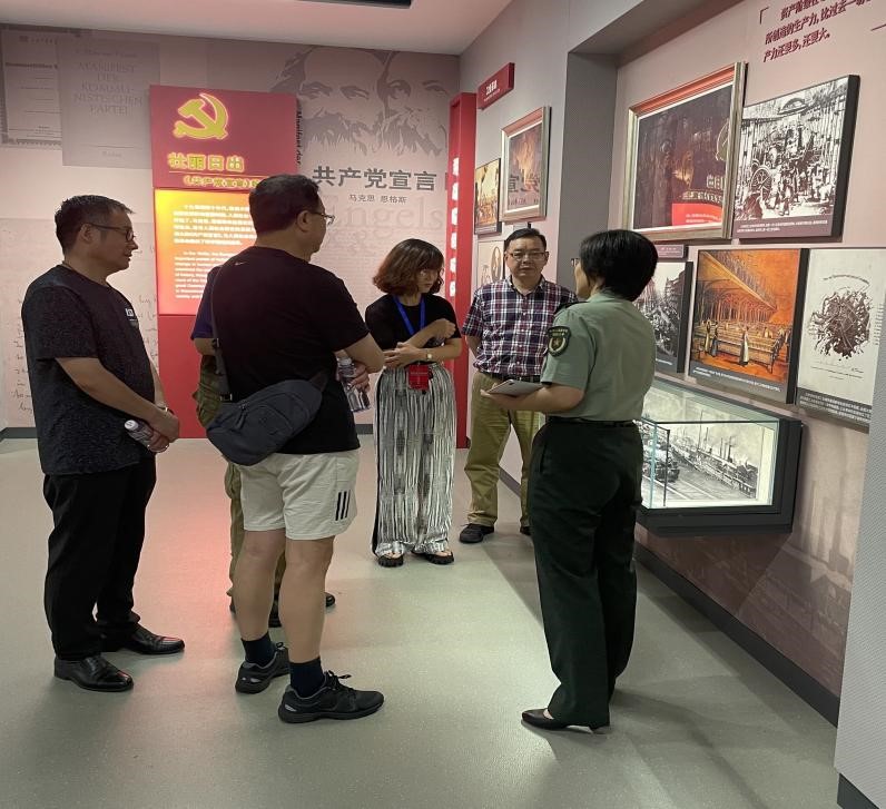 7月23日——24日,公司tyc122ccvip硕士研究生谢晨晨与杜昀参加由国防大学政治公司、上海军事政治学协会举办的军事政治学专家论坛会议,翌日参观了国防大学政治公司新近落成的《共产党宣言》情景教学馆。该教学馆为全国唯一一所《共产党宣言》教学馆,它立足明理与铸魂结合、历史与现实统一、教学与研究并进和军地融合共享的理念,设有“革命导师”“壮丽日出”“红色经典”等七个展区。两位同学通过此次暑期实践,不仅身临其境地学习了《共产党宣言》,而且重温了中国共产党百年奋斗史,深刻理解了党的初心和使命,从而更加坚定了自己的共产主义信仰。