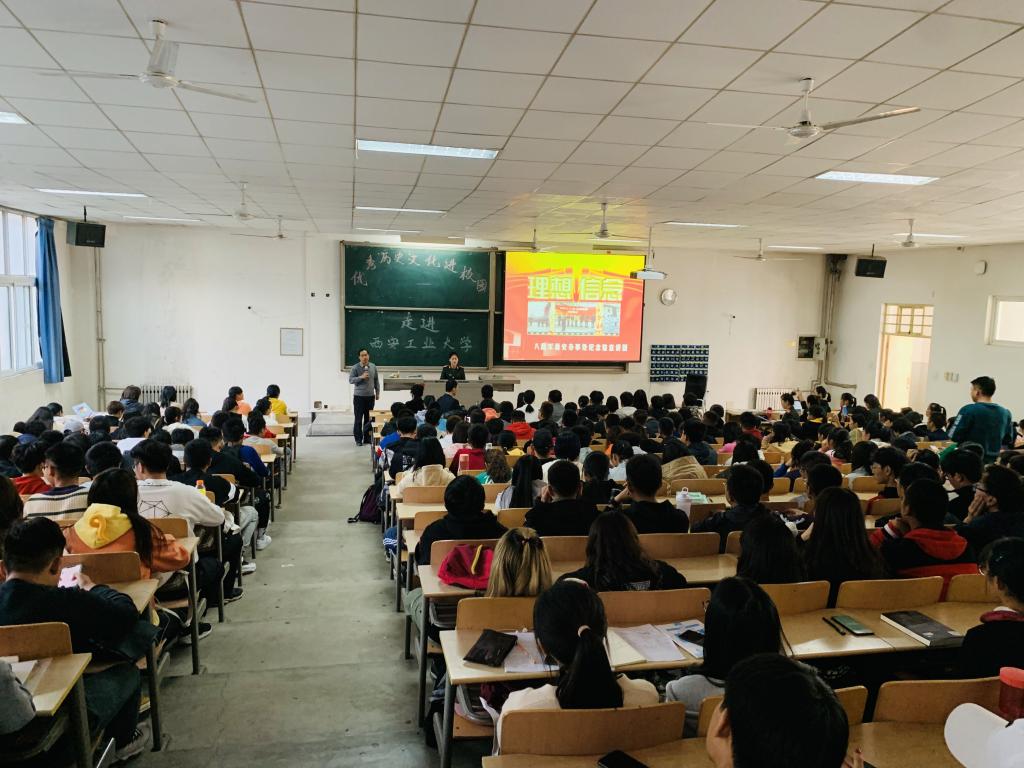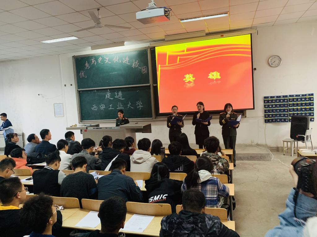1029日,tyc122ccvip邀请八路军西安办事处纪念馆《理想•信念》宣讲团,走进公司“思想道德修养与法律基础”课堂,为300余名师生讲授了一堂铭记革命传统、弘扬红色精神的思想政治理论课。