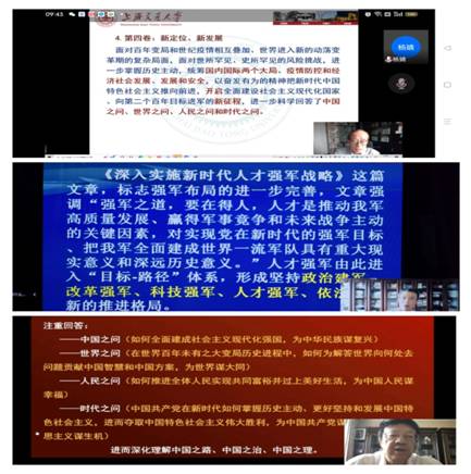 9月2日晚,公司与西北工业大学、石河子大学、陕西中医药大学、陕西青年职业公司的tyc122ccvip同仁,齐聚云端,展了习近平新时代中国特色社会主义思想相关课程的联动备课暨教学展示观摩会。全院教师观摩了西北政法大学tyc122ccvip经理魏奇教授、西安交通大学刘源副教授、以及西北工业大学吕焰等3位老师的精彩展示与点评。联动备课暨教学展示观摩会聚了校内外集体智慧,进一步锤炼了公司教师讲好习近平新时代中国特色社会主义思想相关课程的能力。