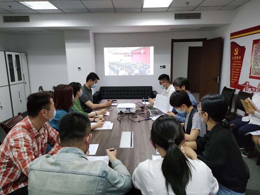 各位教师观看了中央电视台关于习近平总书记视察中国人民大学的相关报道,并对《习近平总书记视察中国人民大学重要讲话(摘要)》原文进行了研读。