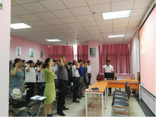 201671日,思政部教工党支部全体党员在图书馆309会议室,面对党旗,举起右拳,再次郑重宣誓:“我志愿加入中国共产党,拥护党的纲领,遵守党的章程,履行党员义务,执行党的决定,严守党的纪律,保守党的秘密,对党忠诚,积极工作,为共产主义奋斗终身,随时准备为党和人民牺牲一切,永不叛党。”这次重温入党誓词活动,是思政部教工党支部开展庆祝建党95周年庆的系列活动之一,也是结合“两学一做”学习教育部署,开展的一次“重温入党誓词”主题党日活动,组织党员重温入党誓词,对照入党志愿谈理想、谈信念,对照入党誓词找标准、找差距,以当初入党时的真诚和激情坚定理想信念,增进对党的感情。旨在与时俱进,在于恪守承诺,在于笃行,目的就是要使思政部全体党员牢记誓词,发挥党员的先锋模范带头作用,积极投身教学、科研和为公司改革发展服务之中。