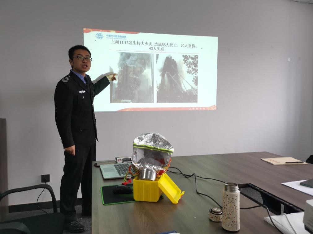 安全健康教育网陕西站消防宣教员董湃借助PPT课件演示,通过触目惊心的图片、视频,一个个真实而又发人深省的案例,讲解电火灾产生的原因,警示教职工高度重视消防安全。他从单位、家庭安全用电,发生火灾处置办法,灭火器的使用方法,针对不同火灾场景如何正确开展安全疏散与逃生的知识等方面,为老师们进行深入浅出的讲解。提醒大家从小事做起,杜绝不良用电习惯。并在现场演示了防毒防烟面具、灭火毯的正确操作方法。