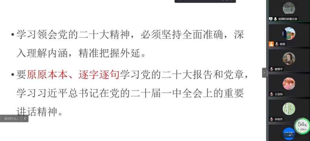 因受疫情影响,本次学习以线上方式进行。中心组成员、党员、全体教职工参加了集体学习。