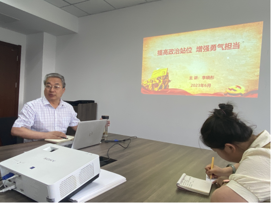 6月15日下午,tyc122ccvip研究生第一党支部邀请李晓彤经理为全体党员讲授题为“提高政治站位,增强勇气担当”的专题党课。支部书记杨婧主持会议,全体员工党员参加此次活动。