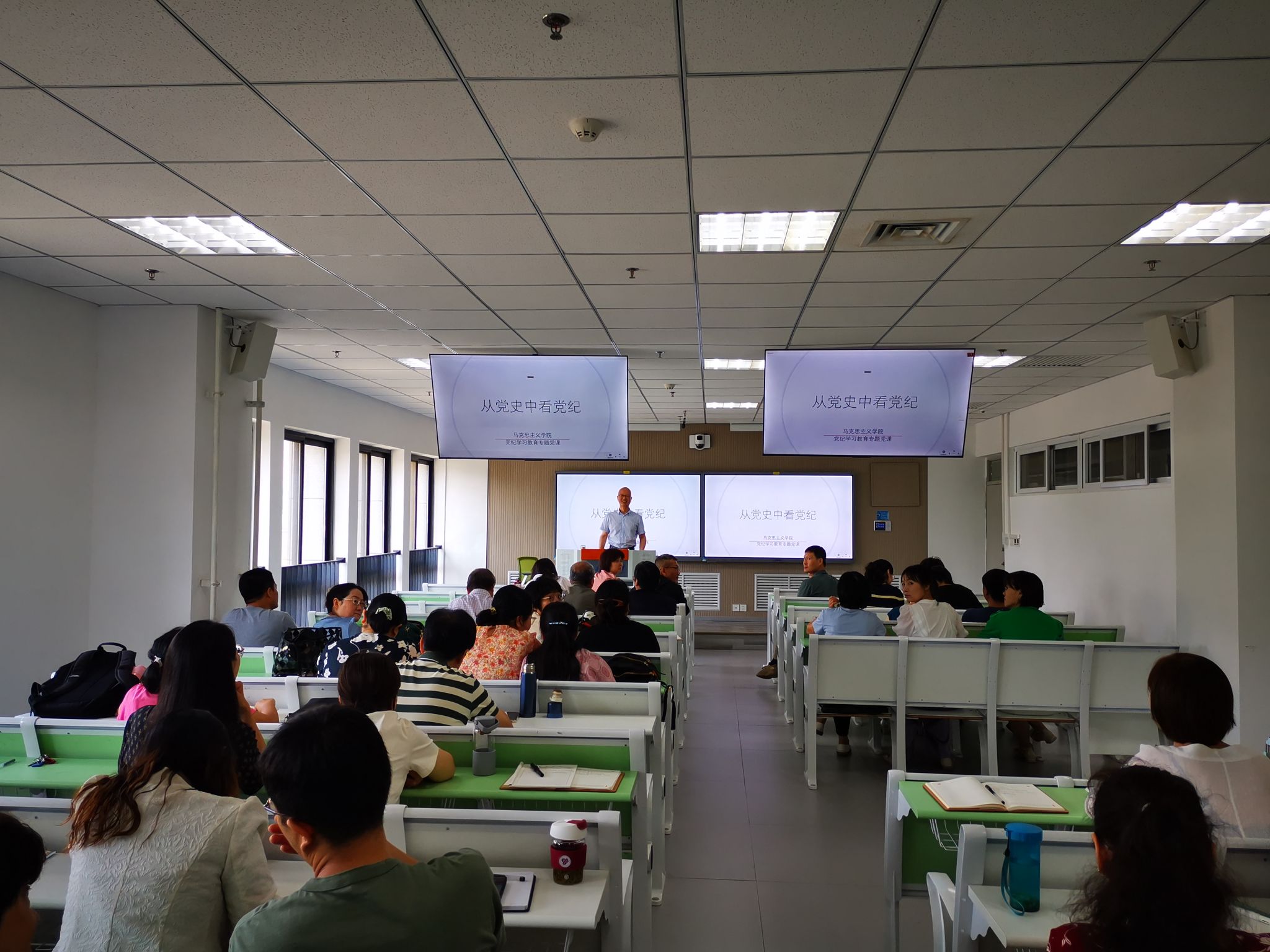 杨灏从党成立以来的几次重要纪律建设事件讲起,重点分析了党的十八大以来纪律建设取得的成就。杨灏指出,十八大以来,我们坚持把纪律教育渗透融汇于六次主题教育之中,在这个意义上这六次党内集中教育也可以看作是六次纪律教育。杨灏强调,这次党纪学习教育,以学习贯彻新修订的纪律处分条例为契机,推动全面从严治党向纵深发展,要求每位教师党员,都能够结合自身思想工作生活实际,把党的纪律化作自觉行动。