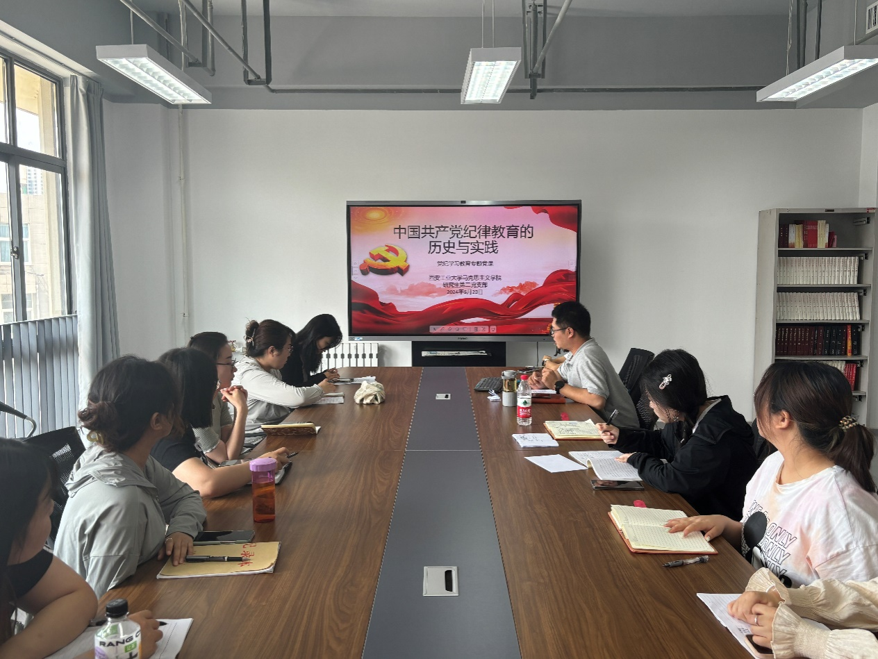 为深入开展党纪学习教育,根据公司、公司党纪学习教育工作的安排,2024年6月20日,tyc122ccvip研究生第二党支部于教7楼502党建活动室开展“支部书记讲纪律党课”活动。支部书记刘鲲向与会党员讲授了一堂题为“中国共产党纪律教育的历史与实践”的党课。