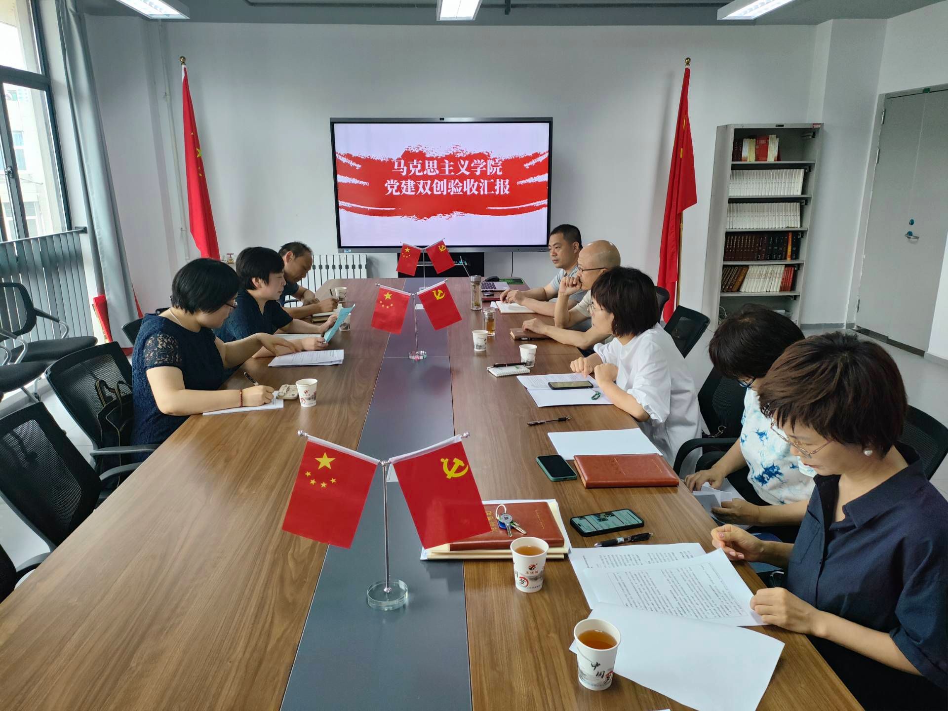 会议依次听取了杨灏代表公司党委、李金玉代表毛泽东思想和中国特色社会主义理论体系概论教研部党支部、张敏代表习近平新时代中国特色社会主义思想概论教研部党支部、王立军代表中国近现代史纲要教研部党支部所做的创建工作情况汇报。