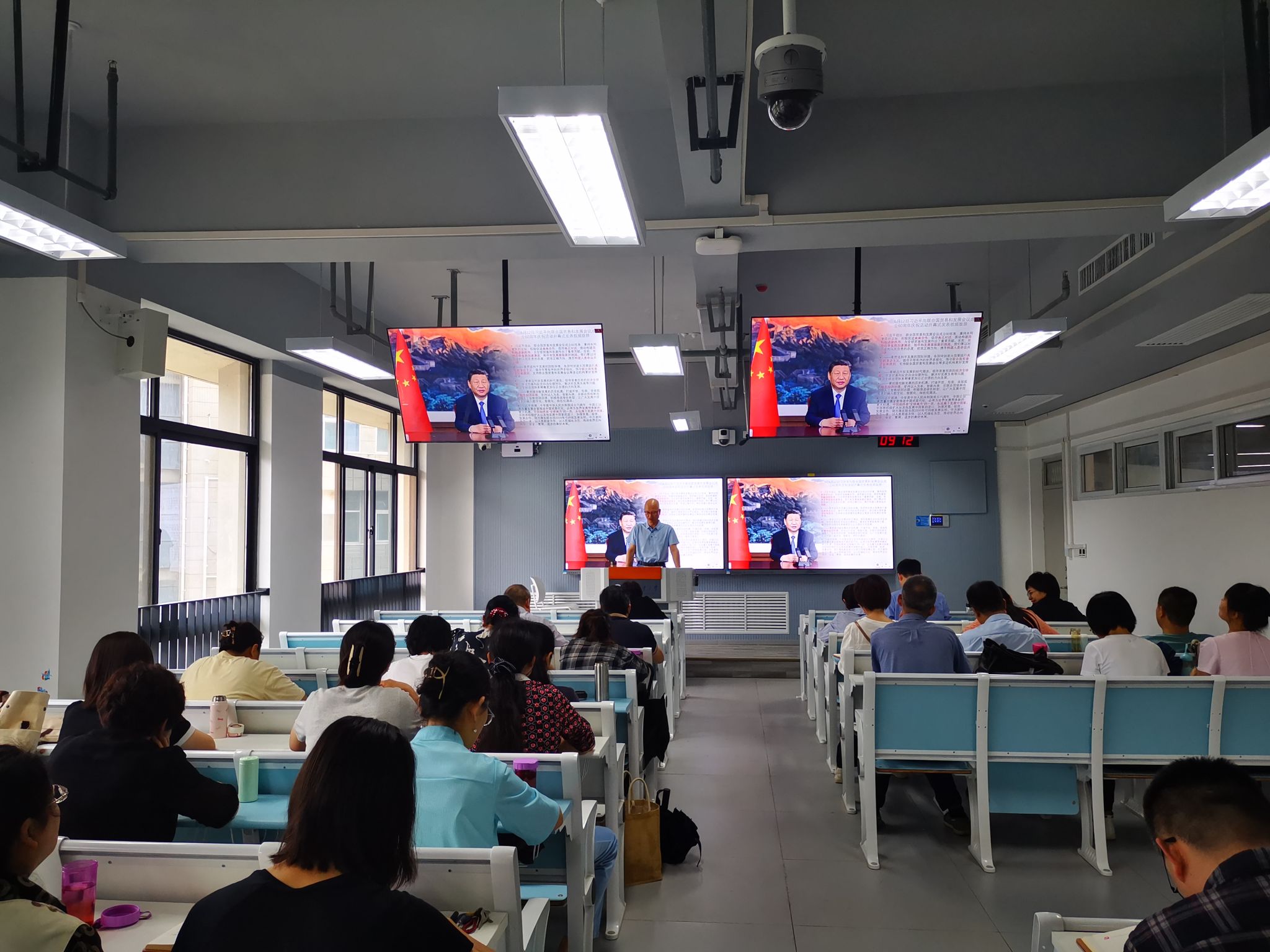 会议学习了习近平向联合国贸易和发展会议成立60周年庆祝活动开幕式发表的致辞。习近平在致辞中指出,联合国贸易和发展会议成立60年来,秉持共同繁荣的宗旨,积极促进南南合作,倡导南北对话,推动构建国际经济新秩序,为全球贸易和发展作出了重要贡献。当前,世界百年变局加速演进,和平和发展面临新的挑战。我们要以对历史和人民负责的态度,把准正确方向,携手构建人类命运共同体。