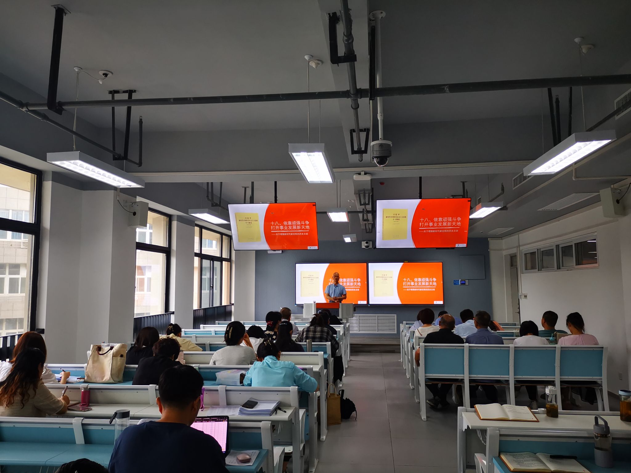 会议还学习了《习近平新时代中国特色社会主义思想学习纲要(2023版)》“第十八章 依靠顽强斗争打开事业发展新天地——关于增强新时代新征程的历史主动”和“第十九章 掌握马克思主义立场观点方法——关于习近平新时代中国特色社会主义思想的世界观和方法论”。会议指出,我们从2023年5月初开始,用了一年多时间,逐章逐节把《习近平新时代中国特色社会主义思想学习纲要(2023版)》进行了集体学习,有组织的落实了读原著、学原文、悟原理。我们坚持原原本本学、及时跟进学,全面系统深入把握这一思想的核心要义、精神实质、丰富内涵、实践要求。今后要继续精思细悟,深刻把握这一思想的世界观、方法论和贯穿其中的立场观点方法,不断提高自己的马克思主义理论水平,增强思政课公司产品效果。