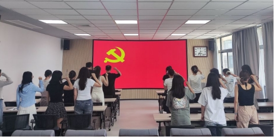 活动伊始,全体党员庄严肃立,面向鲜红的党旗,在支部书记杨婧的带领下,郑重地举起右拳,齐声宣誓。铿锵有力的誓言在会场内久久回荡,入党誓词里的每一个字都饱含着党员们对党的无限忠诚与坚定信仰,彰显了员工党员为党和人民的事业奋斗终身的决心。