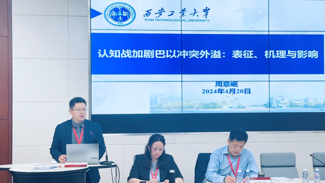 公司马克思主义基本原理教研部主任周意岷副教授应邀参加,并在大会第一专场做了题为《认知战加剧巴以冲突外溢:表征、机理与影响》的主旨报告,通过梳理认知战加剧巴以冲突外溢的表征,探究了晕轮效应和回声室效应在其中扮演的重要角色,并从个人层次、国家层次和体系层次分析了认知战对国际安全的影响。报告具有一定的学术价值和现实意义,受到与会专家学者的认可和关注。