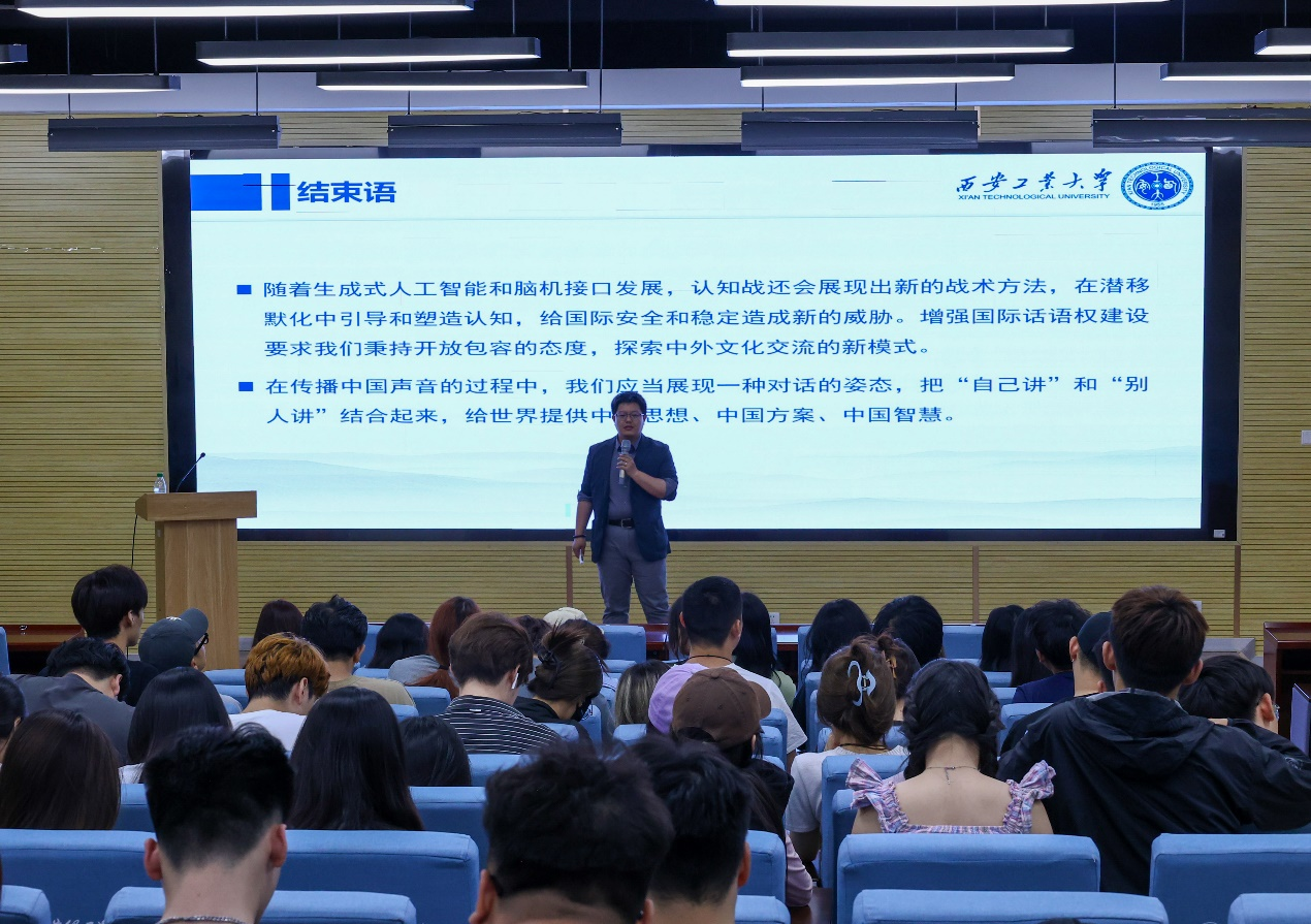 5月15日,西安明德理工公司艺术与设计公司特邀tyc122ccvip马克思主义基本原理教研部主任周意岷副教授做了题为《新时代大国外交视野下的对外传播》的主题讲座,讲座由艺术与设计公司播音与主持艺术专业辅导员刘思瑞主持,播音与主持艺术专业2022级、2023级全体同学参与。
