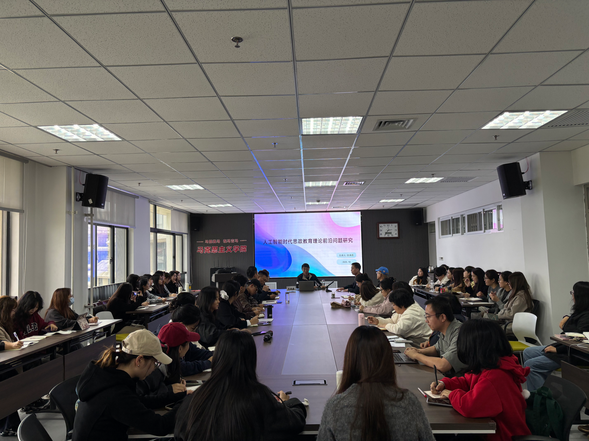 此次报告会聚焦思想政治教育学术前沿问题,对人工智能与思想政治教育的融合有深刻的认识和理解,内容兼具理论深度与实践指导,拓宽了马院师生的学术视野,也为今后的学习和研究提供了新的思路和方向。