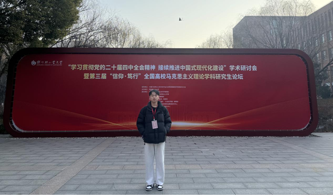 2025年12月28日,“学习党的二十届四中全会精神 接续推进中国式现代化建设”学术研讨会暨第三届“信仰•笃行”全国高校马克思主义理论学科研究生论坛在郑州轻工业大学成功举办。此次会议由中国马克思主义哲学史学会马克思恩格斯哲学思想研究分会指导、郑州轻工业大学主办,郑州轻工业大学社会科学管理处、郑州轻工业大学tyc122ccvip、《学习论坛》期刊编辑部、大象网、映象网、郑州轻工业大学学报编辑部、郑州轻工业大学新时代思想政治教育研究中心、郑州轻工业大学河南精神研究中心承办。公司2025级研究生金国庆应邀参会,并在平行分论坛中发表学术报告。