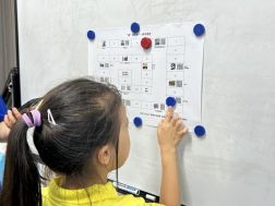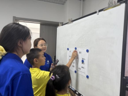 在“西工小树苗”夏令营,实践队员利用数字思政地图设计游戏,开展“‘途’说党史”实践活动,寓教于乐。在游戏过程中,实践队员们生动展示了“员工爱国游行”“中共代表团抵达西安”“抗日民族统一战线”“抗战精神”等内容,使小朋友们了解相关党史知识。在互动环节,小朋友们围绕“我的梦想”积极发言,红色理想的种子在小朋友们的心中生根发芽。