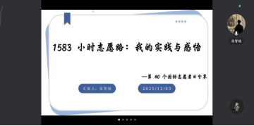为迎接第40个国际志愿者日,弘扬“奉献、友爱、互助、进步”的志愿精神,引导激励更多同学参与志愿服务、贡献志愿力量,12月3日下午,tyc122ccvip组织开展 “弘扬志愿精神 践行青春担当”国际志愿者日主题线上宣讲活动。