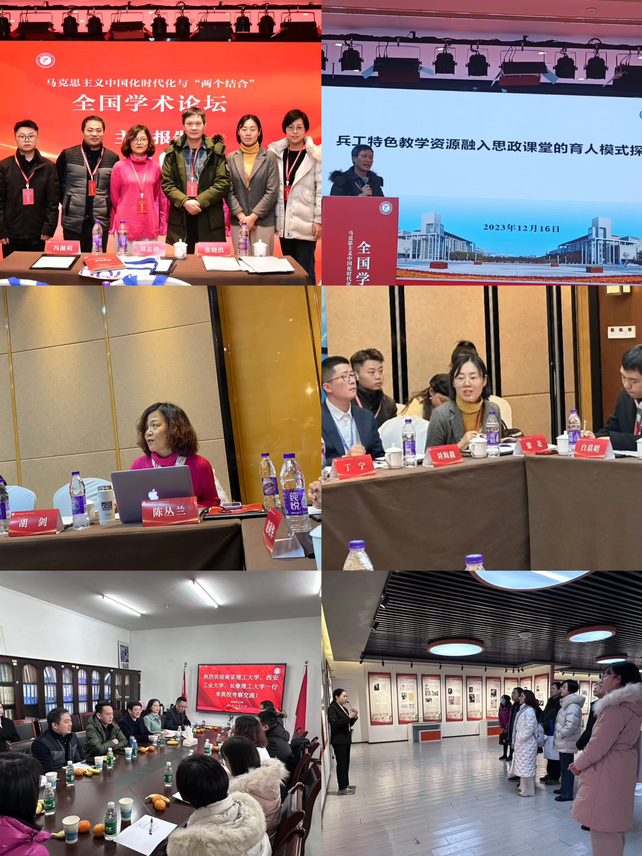 (自左向右、自上向下分别为:图1 与会师生合影;图2 孟文科副经理做主旨报告;图3 、图4 陈丛兰教授和梁花博士做分论坛报告5 “兵工七子”座谈交流;图6 参观红岩精神纪念馆)