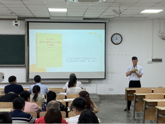 会议还学习了《习近平新时代中国特色社会主义思想学习纲要》第二章《新时代坚持和发展中国特色社会主义》的内容。会议指出,这一章的关键词包括唯物史观、剩余价值学说、改革开放、中国特色社会主义、新时代、主要矛盾、社会主义初级阶段、总体布局、战略布局、四个自信、两个结合等。认真学习领会这部分内容,不仅对于我们讲好《习近平新时代中国特色社会主义思想概论》这门课,而且对于讲好其他各门思政课程,都会有直接帮助。会议要求会后要继续自学相关内容,务必融会贯通入脑入心。
